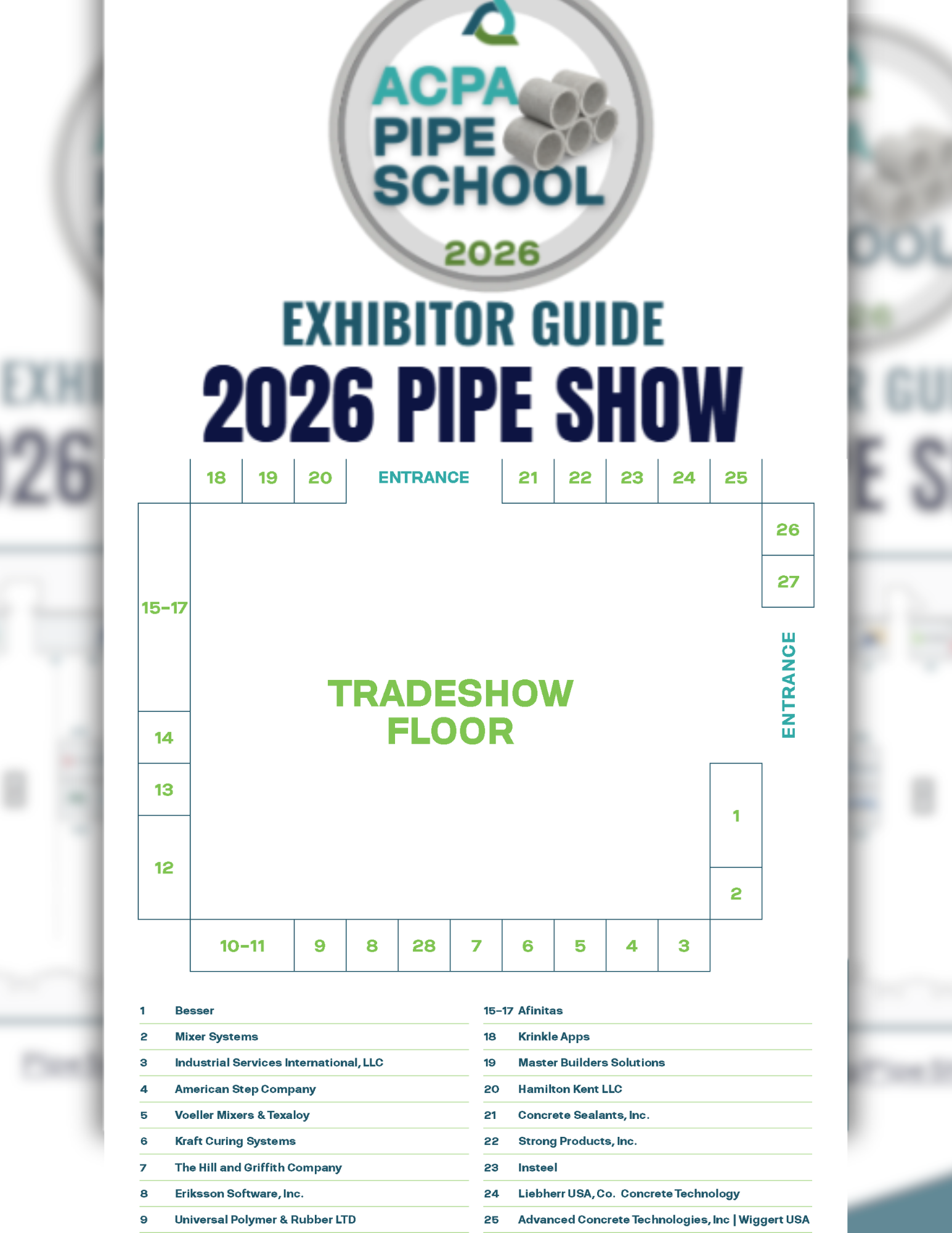 If you are an exhibitor at the Pipe Show and have any questions, please reach out to Veronica Bailon (vbailon@concretepipe.org).